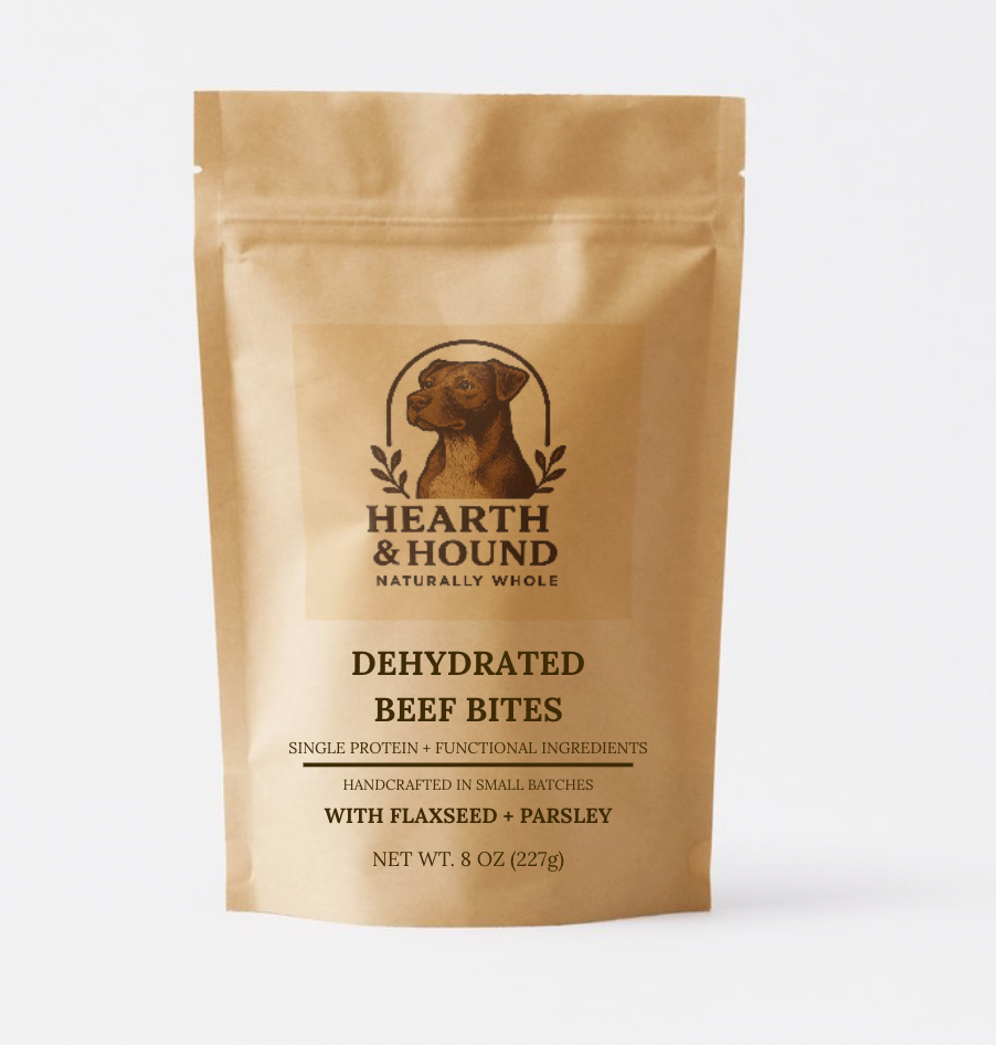 Our cleanest, simplest treat — just real beef, ground flaxseed, and parsley. These crunchy bites are packed with protein and nothing else.